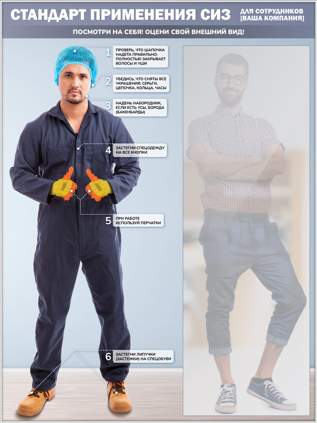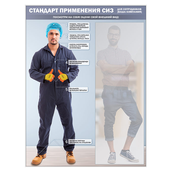 Стенд для демонстрации применения СИЗ с зеркалом, 1500х2000 мм в серебряном багете (СПС-02-С) в Ижевске купить