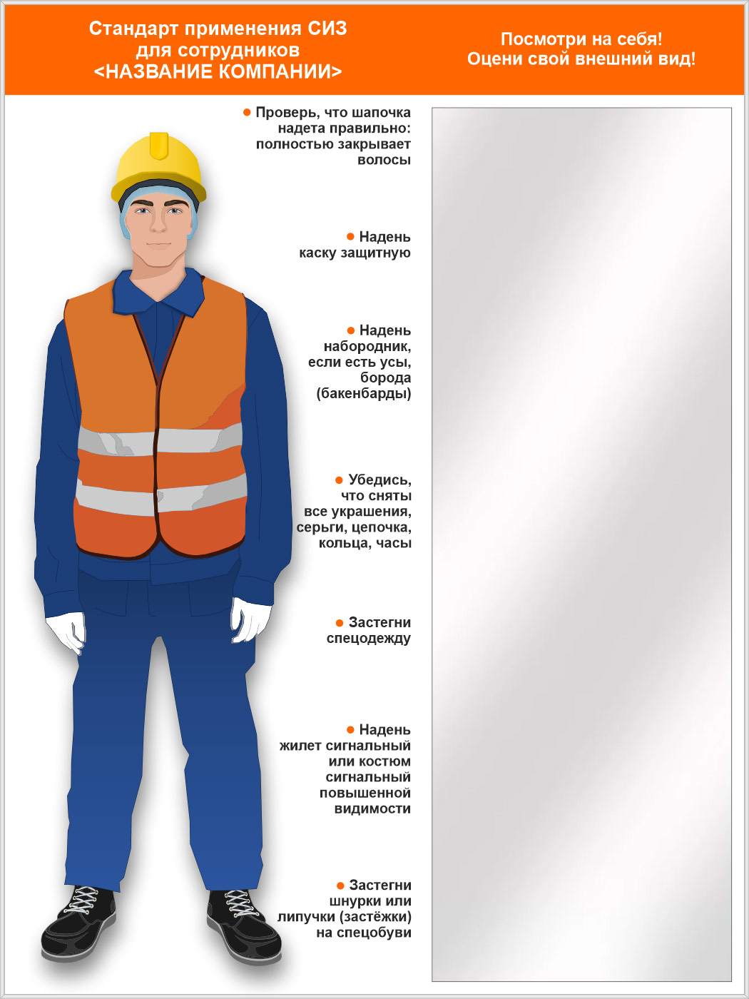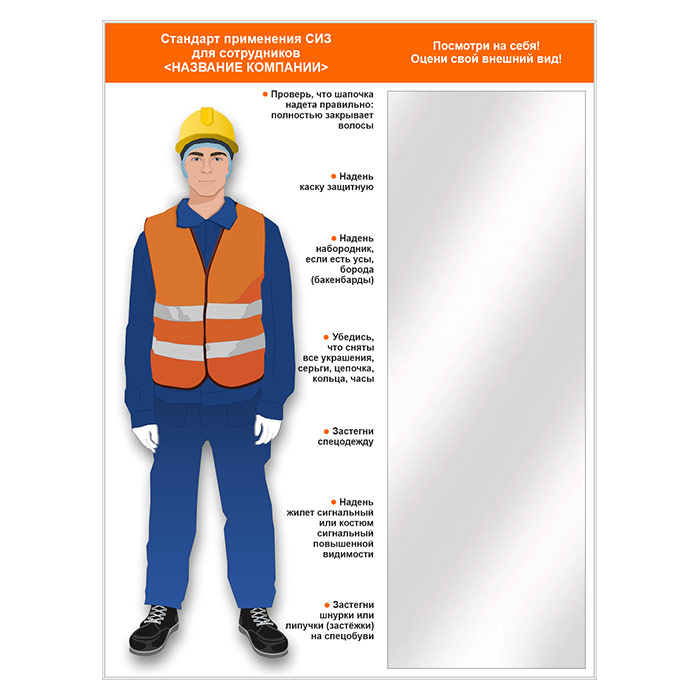 Стенд для демонстрации применения СИЗ с зеркалом, 1500х2000 мм в серебряном багете (СПС-02.2-С) в Ижевске купить