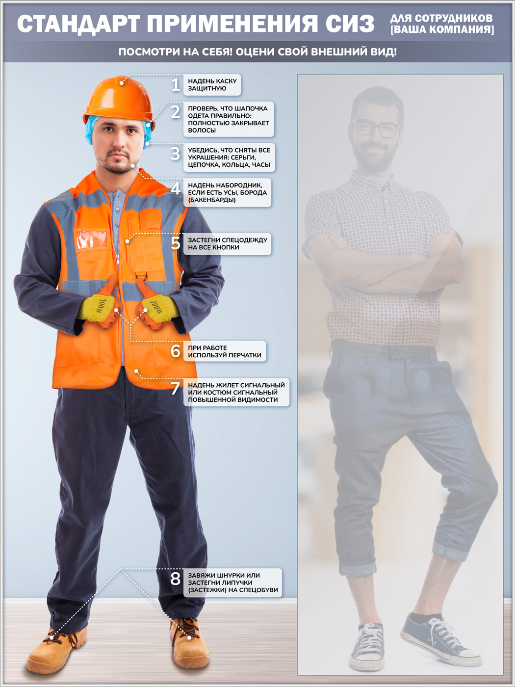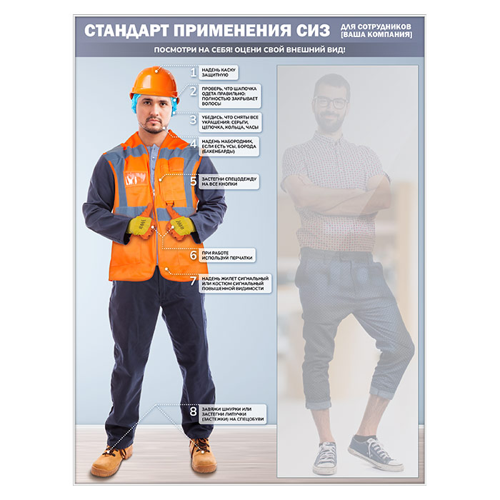 Стенд для демонстрации применения СИЗ с зеркалом, 1500х2000 мм в серебряном багете (СПС-03-С) в Ижевске купить
