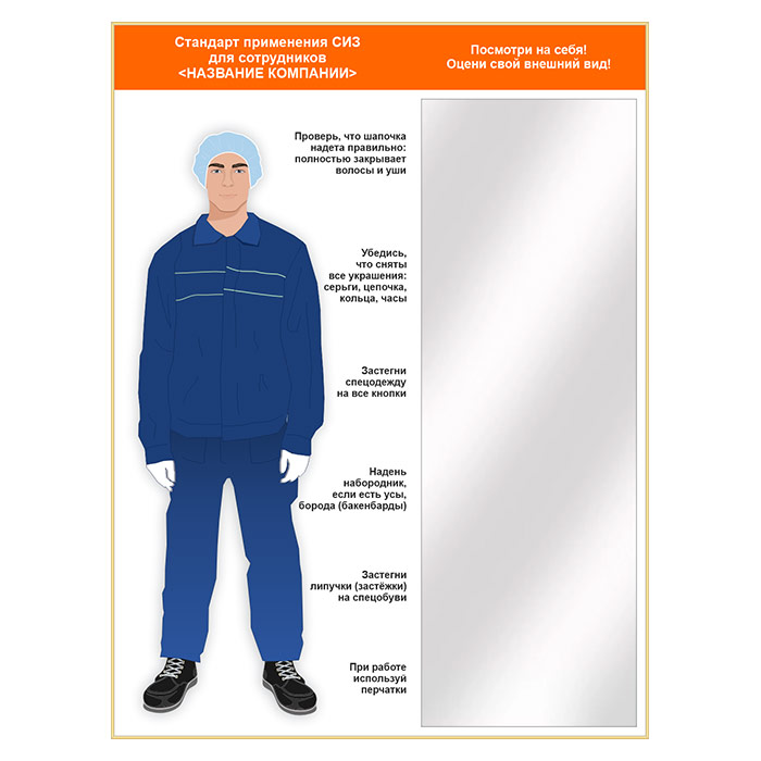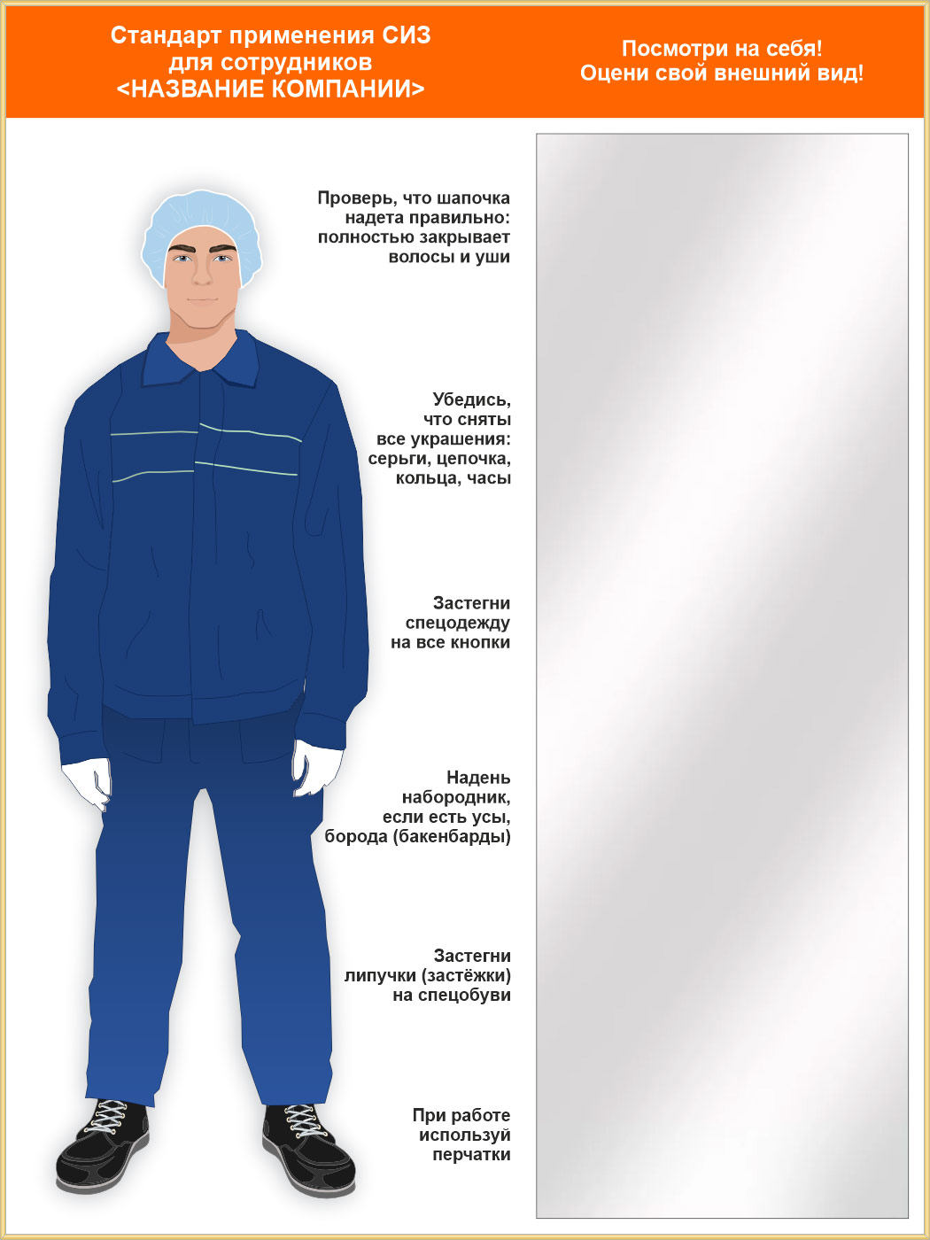 Стенд для демонстрации применения СИЗ с зеркалом, 1500х2000 мм в золотом багете (СПС-03.2-З) в Ижевске купить