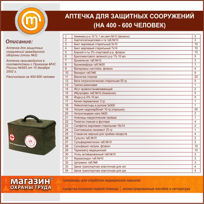 Аптечка для Защитных Сооружений (на 400 - 600 человек) - сумка в Ижевске купить