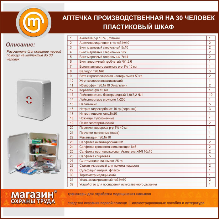 Аптечка ПРОИЗВОДСТВЕННАЯ (до 30 человек) - пластиковый шкаф в Ижевске купить