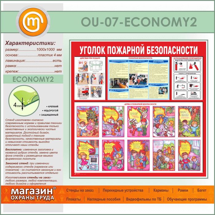 Стенд «Уголок пожарной безопасности» (OU-07-ECONOMY2) в Ижевске купить
