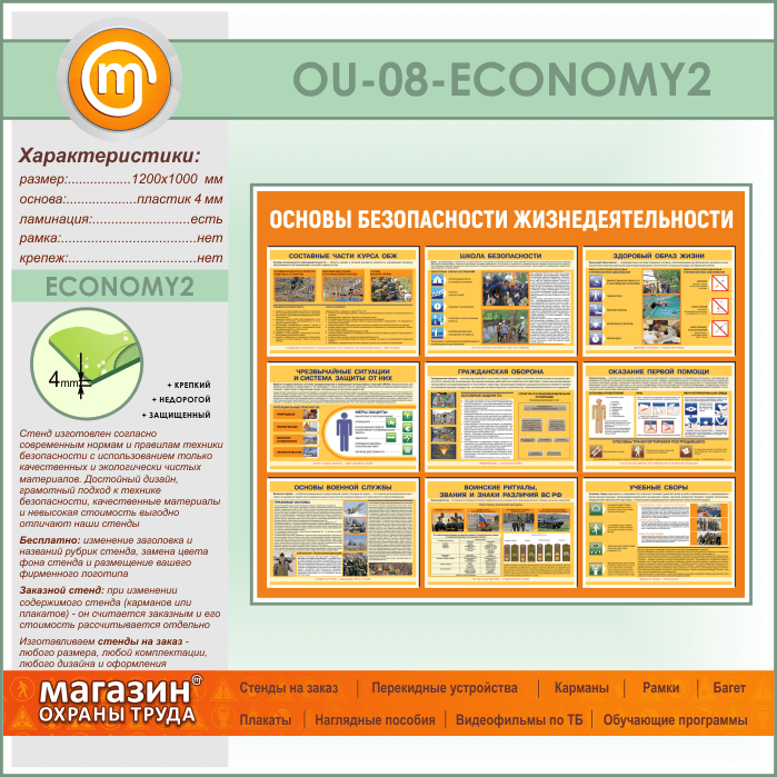 Стенд «Основы безопасности жизнедеятельности» (OU-08-ECONOMY2) в Ижевске купить