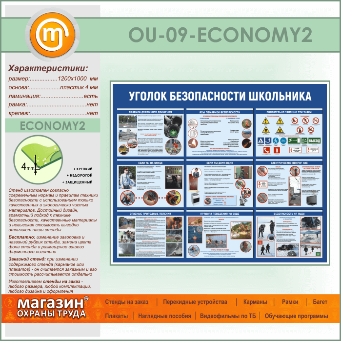 Стенд «Уголок безопасности школьника» (OU-09-ECONOMY2) в Ижевске купить