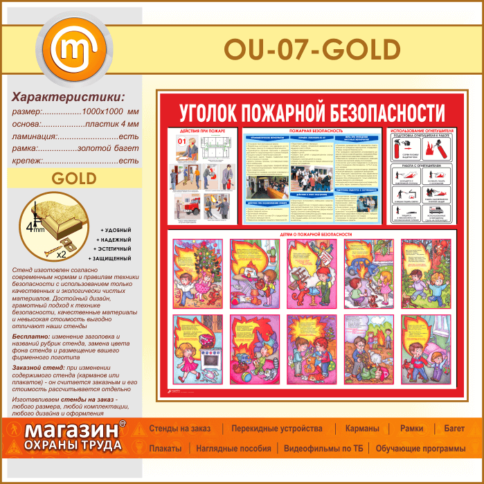 Стенд «Уголок пожарной безопасности» (OU-07-GOLD) в Ижевске купить