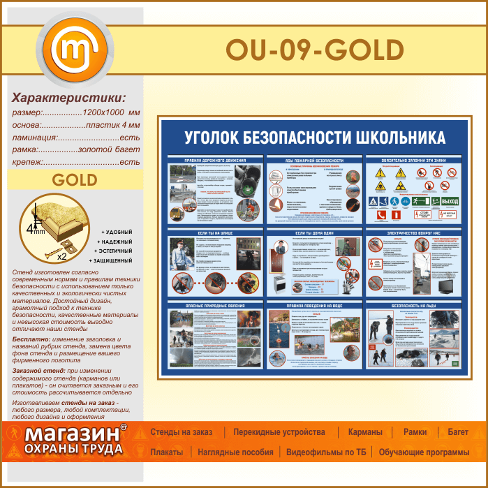Стенд «Уголок безопасности школьника» (OU-09-GOLD) в Ижевске купить