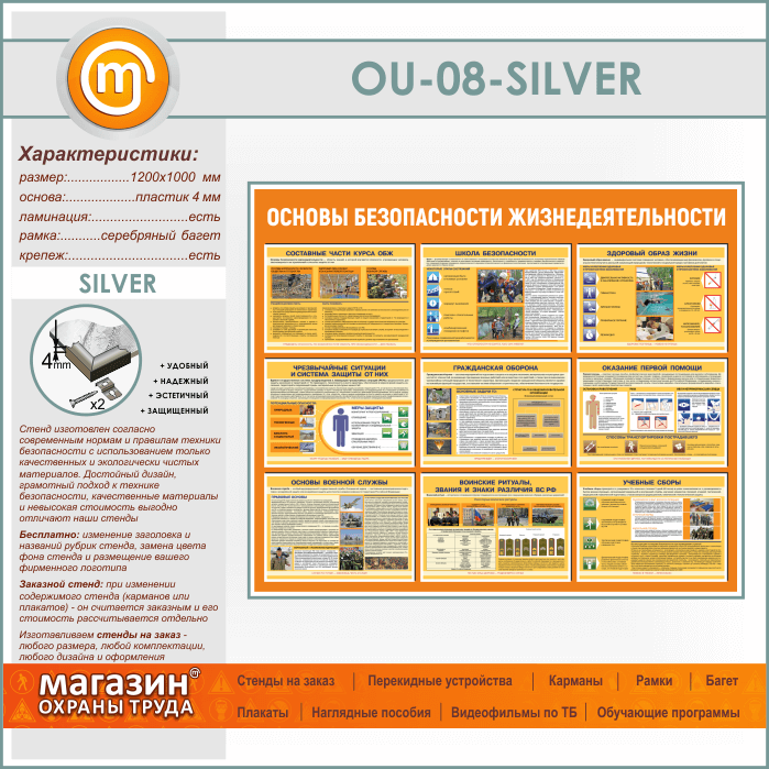Стенд «Основы безопасности жизнедеятельности» (OU-08-SILVER) в Ижевске купить