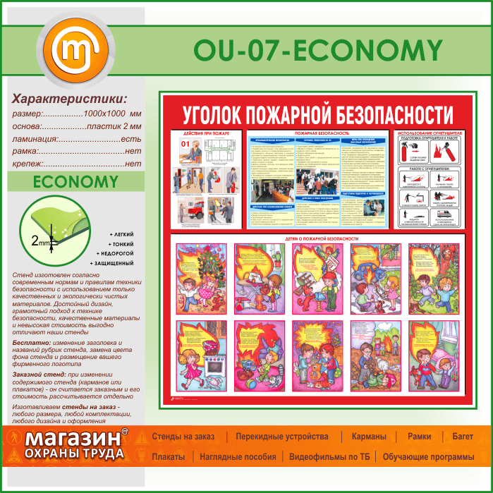 Стенд «Уголок пожарной безопасности» (OU-07-ECONOMY) в Ижевске купить