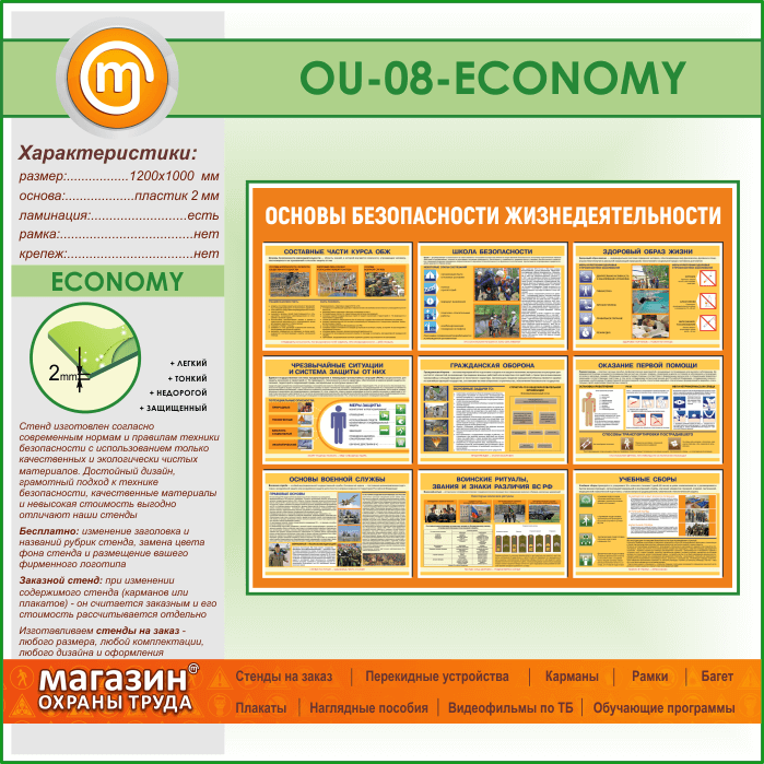Стенд «Основы безопасности жизнедеятельности» (OU-08-ECONOMY) в Ижевске купить