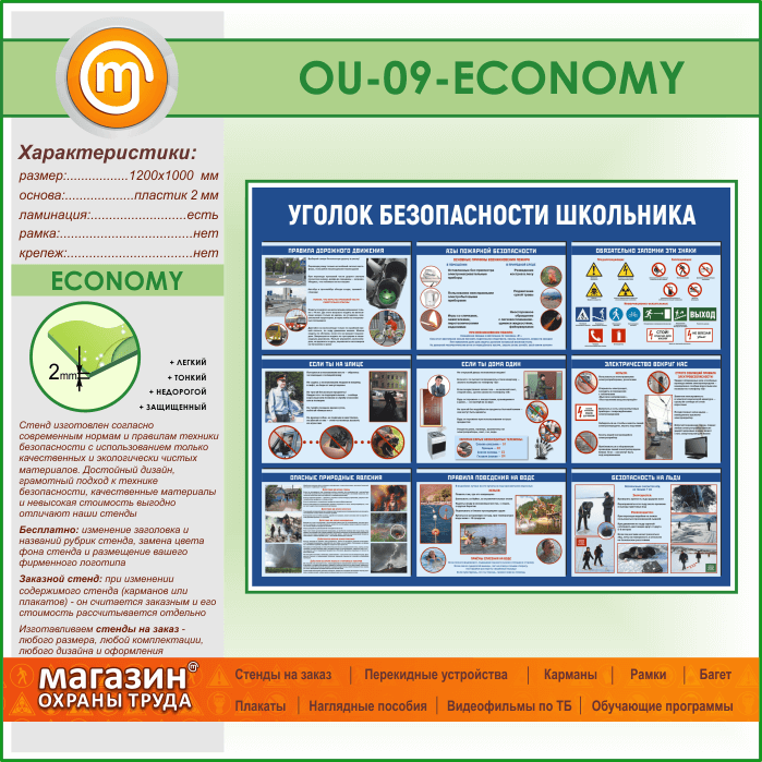 Стенд «Уголок безопасности школьника» (OU-09-ECONOMY) в Ижевске купить