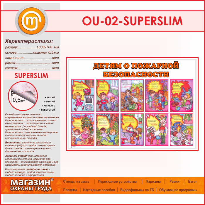 Стенд «Детям о пожарной безопасности» (OU-02-SUPERSLIM) в Ижевске купить