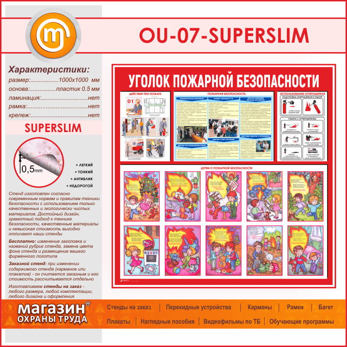 Стенд «Уголок пожарной безопасности» (OU-07-SUPERSLIM) в Ижевске купить