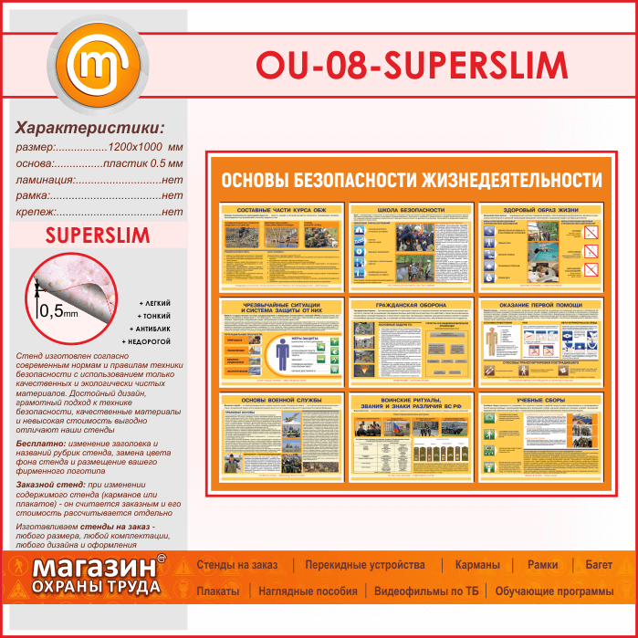 Стенд «Основы безопасности жизнедеятельности» (OU-08-SUPERSLIM) в Ижевске купить