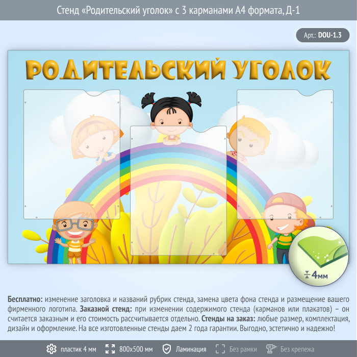 Стенд «Родительский уголок» с 3 карманами А4 формата (DOU-1.3) в Ижевске купить