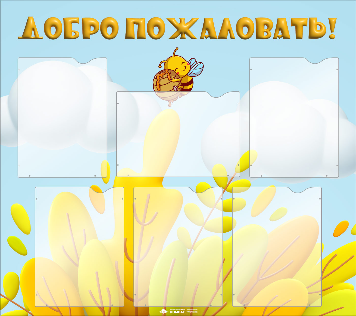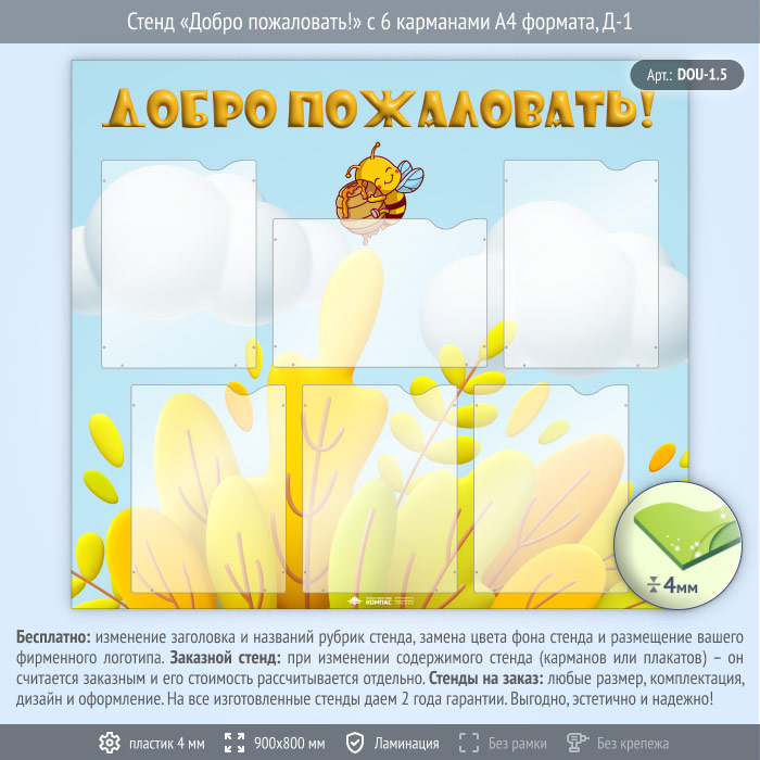 Стенд «Добро пожаловать!» с 6 карманами А4 формата (DOU-1.5) в Ижевске купить