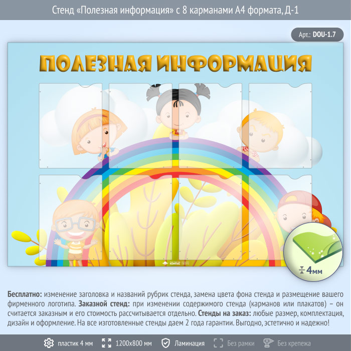 Стенд «Полезная информация» с 8 карманами А4 формата (DOU-1.7) в Ижевске купить