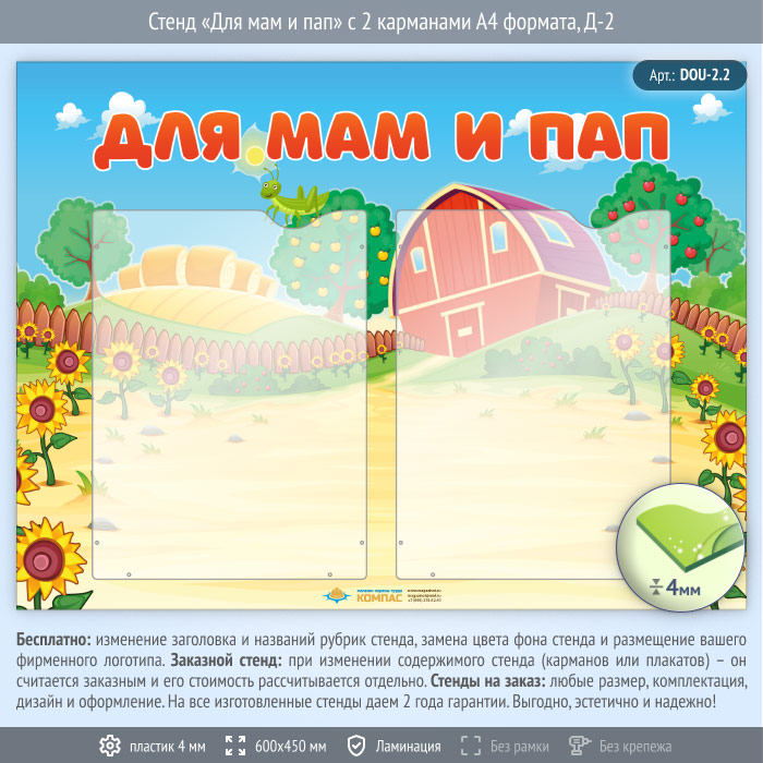 Стенд «Для мам и пап» с 2 карманами А4 формата (DOU-2.2) в Ижевске купить