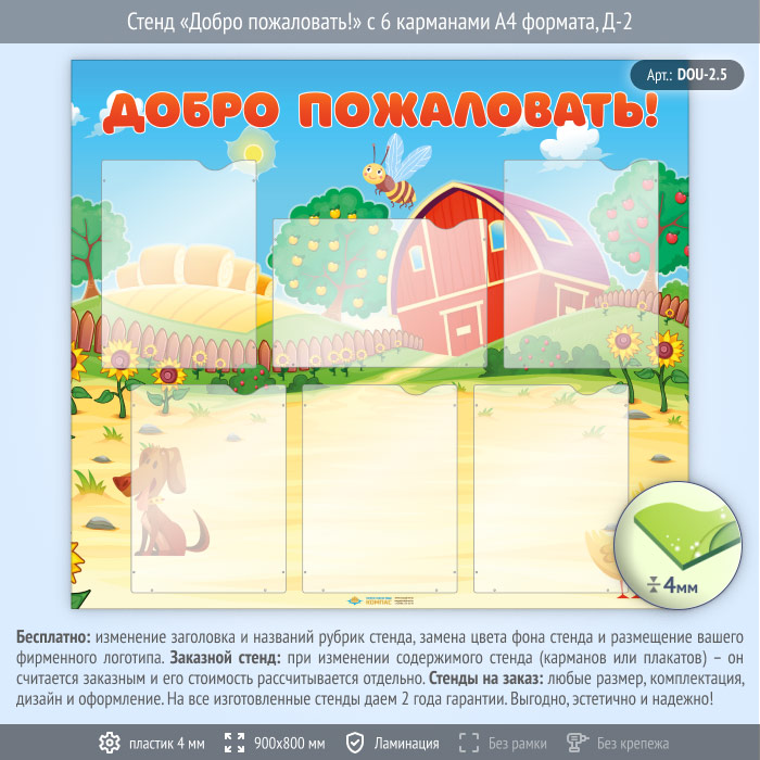 Стенд «Добро пожаловать!» с 6 карманами А4 формата (DOU-2.5) в Ижевске купить