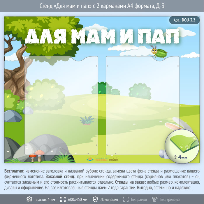 Стенд «Для мам и пап» с 2 карманами А4 формата (DOU-3.2) в Ижевске купить