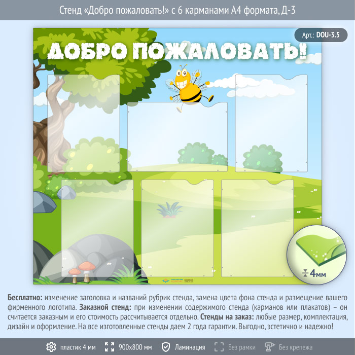 Стенд «Добро пожаловать!» с 6 карманами А4 формата (DOU-3.5) в Ижевске купить