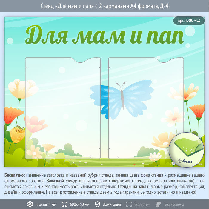 Стенд «Для мам и пап» с 2 карманами А4 формата (DOU-4.2) в Ижевске купить