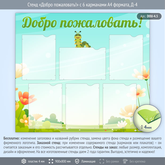 Стенд «Добро пожаловать!» с 6 карманами А4 формата (DOU-4.5) в Ижевске купить
