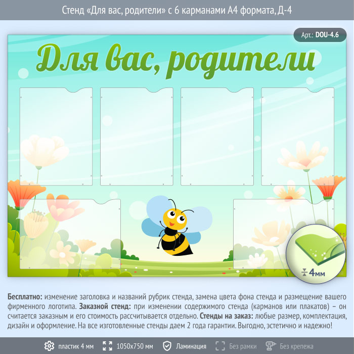 Стенд «Для вас, родители» с 6 карманами А4 формата (DOU-4.6) в Ижевске купить