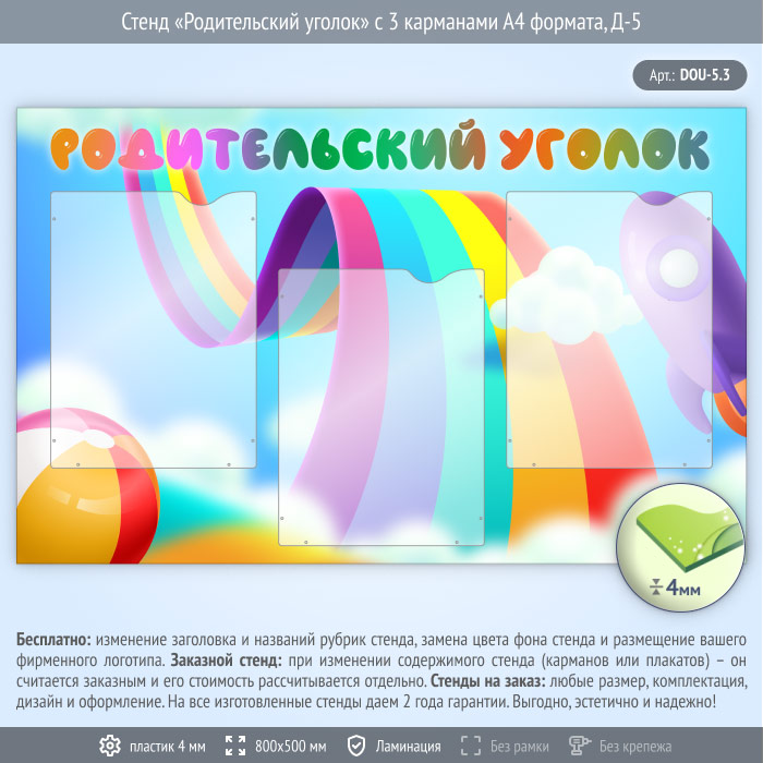 Стенд «Родительский уголок» с 3 карманами А4 формата (DOU-5.3) в Ижевске купить