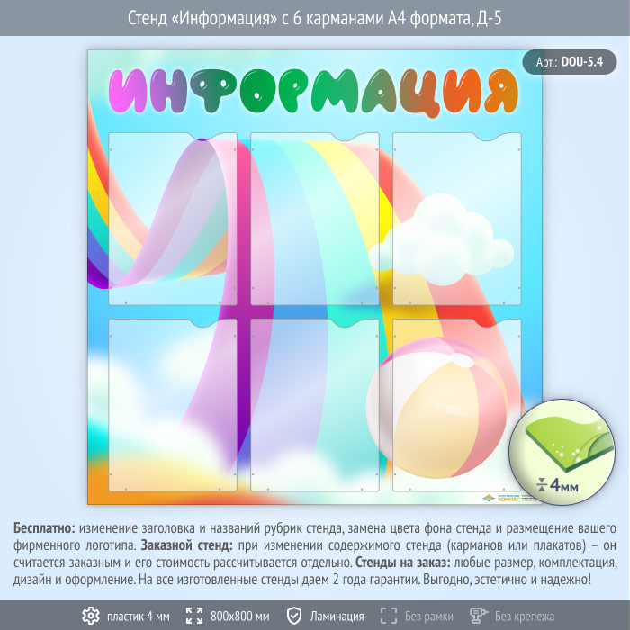 Стенд «Информация» с 6 карманами А4 формата (DOU-5.4) в Ижевске купить