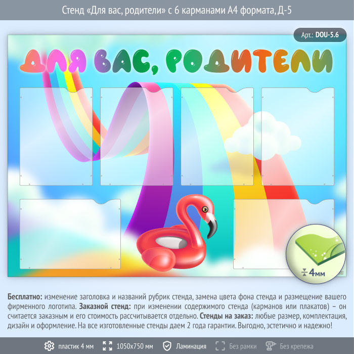 Стенд «Для вас, родители» с 6 карманами А4 формата (DOU-5.6) в Ижевске купить