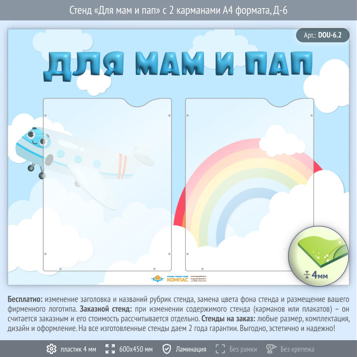 Стенд «Для мам и пап» с 2 карманами А4 формата (DOU-6.2) в Ижевске купить