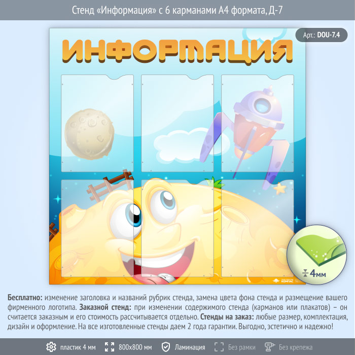Стенд «Информация» с 6 карманами А4 формата (DOU-7.4) в Ижевске купить