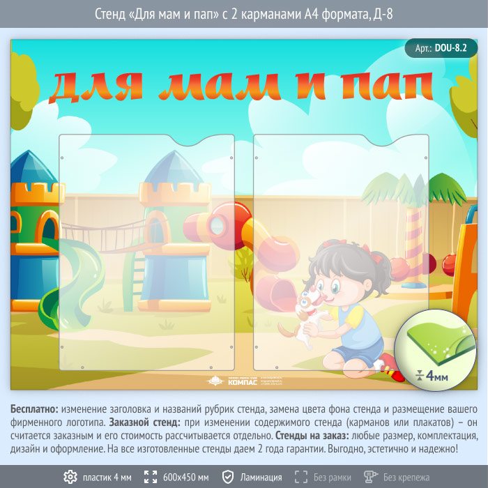 Стенд «Для мам и пап» с 2 карманами А4 формата (DOU-8.2) в Ижевске купить