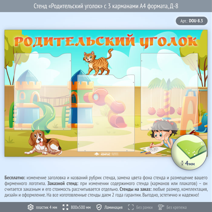 Стенд «Родительский уголок» с 3 карманами А4 формата (DOU-8.3) в Ижевске купить