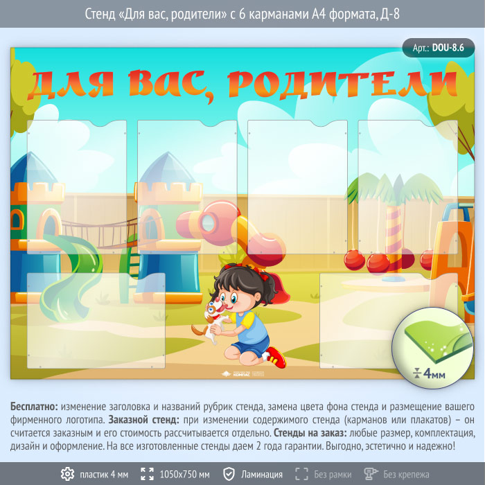 Стенд «Для вас, родители» с 6 карманами А4 формата (DOU-8.6) в Ижевске купить