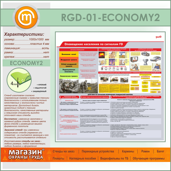 Стенд «Оповещение населения по сигналам ГО» (RGD-01-ECONOMY2) в Ижевске купить