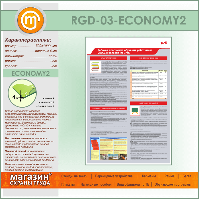 Стенд «Рабочая программа обучения работников СКЖД в области ГО и ЧС» (RGD-03-ECONOMY2) в Ижевске купить