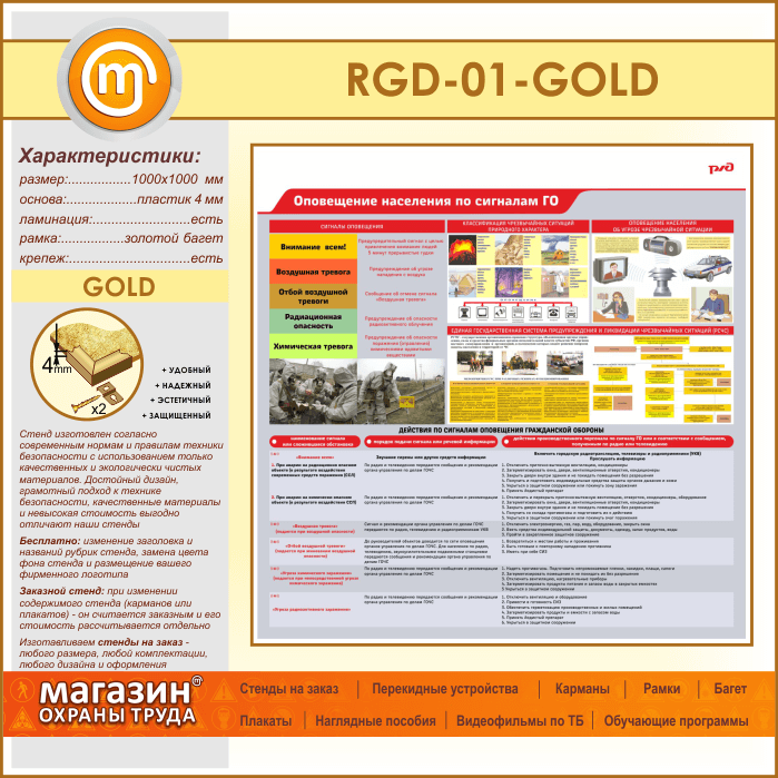 Стенд «Оповещение населения по сигналам ГО» (RGD-01-GOLD) в Ижевске купить