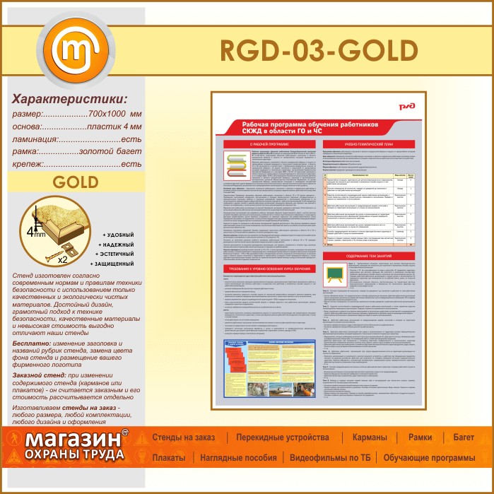 Стенд «Рабочая программа обучения работников СКЖД в области ГО и ЧС» (RGD-03-GOLD) в Ижевске купить