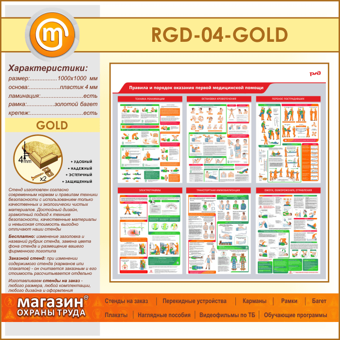 Стенд «Правила и порядок оказания первой медицинской помощи» (RGD-04-GOLD) в Ижевске купить