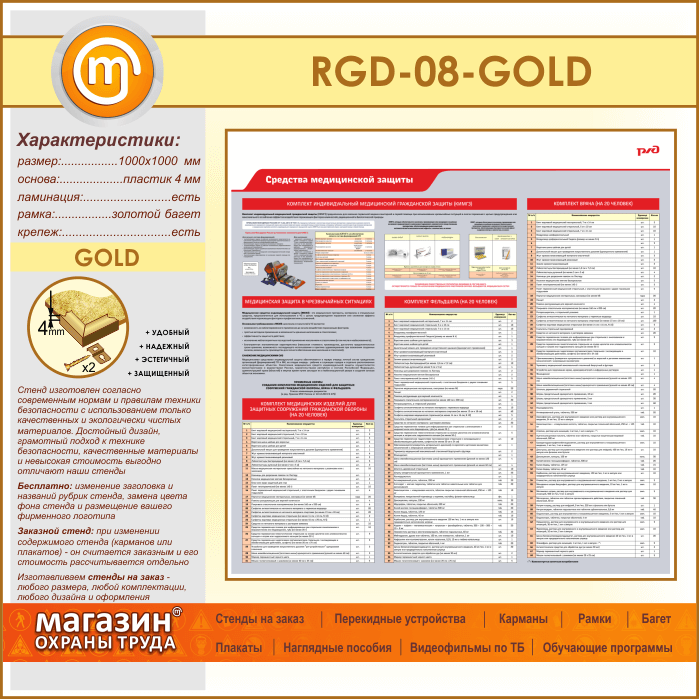 Стенд «Средства медицинской защиты» (RGD-08-GOLD) в Ижевске купить