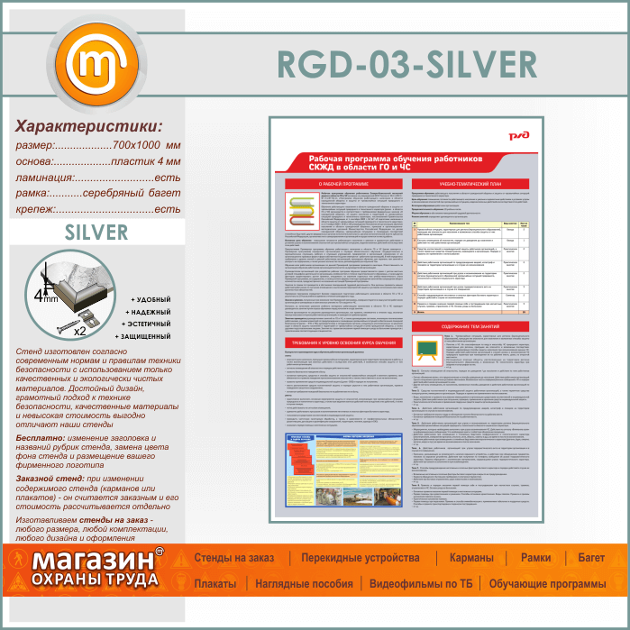 Стенд «Рабочая программа обучения работников СКЖД в области ГО и ЧС» (RGD-03-SILVER) в Ижевске купить