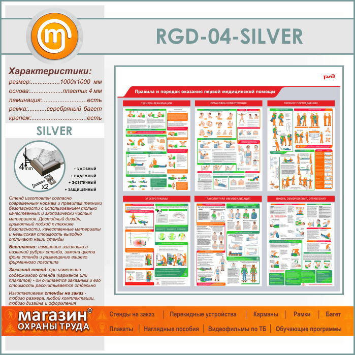 Стенд «Правила и порядок оказания первой медицинской помощи» (RGD-04-SILVER) в Ижевске купить