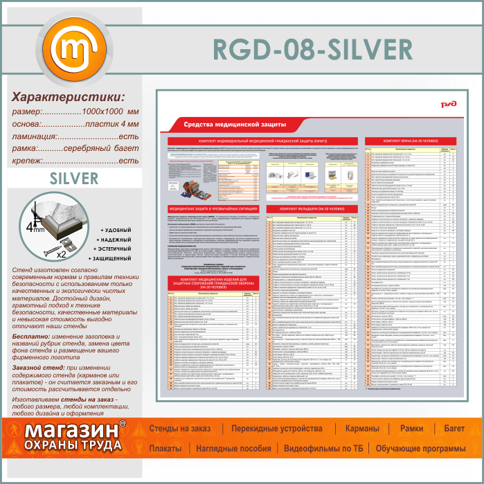 Стенд «Средства медицинской защиты» (RGD-08-SILVER) в Ижевске купить