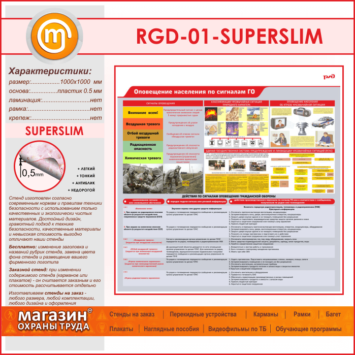 Стенд «Оповещение населения по сигналам ГО» (RGD-01-SUPERSLIM) в Ижевске купить