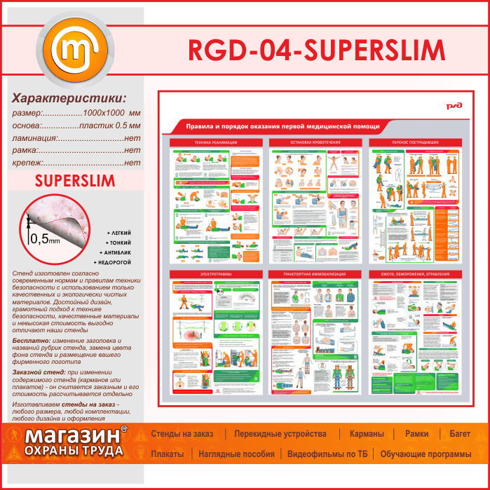 Стенд «Правила и порядок оказания первой медицинской помощи» (RGD-04-SUPERSLIM) в Ижевске купить