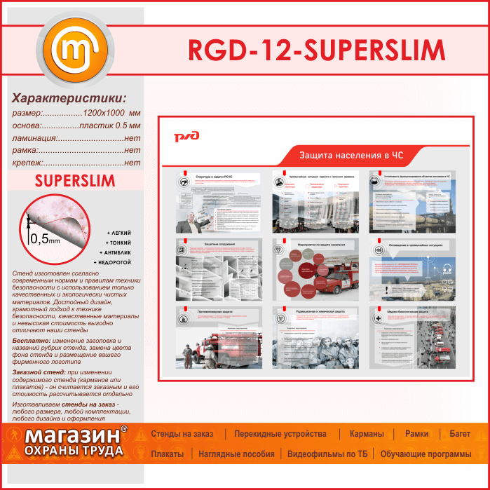 Стенд «Защита населения в ЧС» (RGD-12-SUPERSLIM) в Ижевске купить