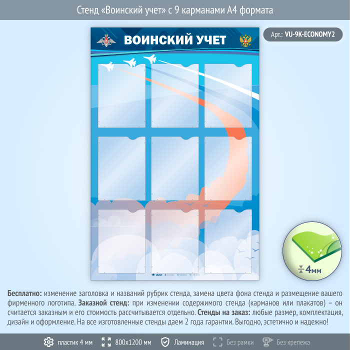 Стенд «Воинский учет» с 9 карманами А4 формата (VU-9K-ECONOMY2) в Ижевске купить