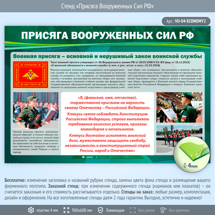 Стенд «Присяга Вооруженных Сил РФ» (VU-04-ECONOMY2) в Ижевске купить